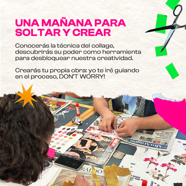 Será una mañana de collage-terapia en la que dejaremos a un lado el miedo de “no saber hacerlo” o “no lo he hecho nunca” y nos centraremos en disfrutar del proceso, sin prisas ni expectativas.