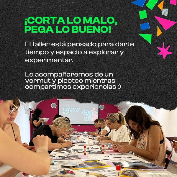 Te enseñaré la técnica del collage, descubrirás su poder como herramienta para desbloquear la creatividad (¡tiene infinitas posibilidades!). Y lo más importante: crearás tu propia obra. Yo te iré guiando en el proceso, DON’T WORRY!